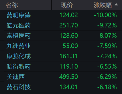 板块中皓元医药、泰格医药、九州药业、康龙化成、昭衍新药、美迪西、药石科技等个股纷纷跟跌。15只股票全天市值蒸发接近700亿元。