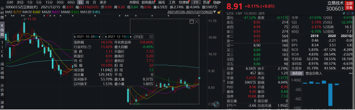 股价走势上,自10月底创下阶段低点以来,公司股价走出了一波反弹走势,自低点反弹超10%。今日,公司股价高开低走,截至收盘,微涨0.11%,报8.91元/股,总市值33亿元。