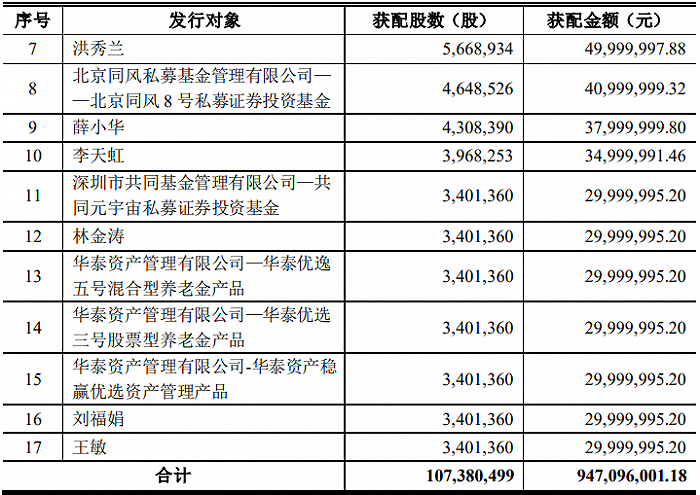 立昂技术2月24日公告,本次共发行人民币普通股1.07亿股,公司实际控制人王刚认购数量为566.89万股,本次向特定对象发行的股票将在深交所创业板上市。发行价格为8.82元/股,募资总额为9.47亿元。获配情况方面,诺德基金获配1.62亿元,财通基金获配1.38亿元。
