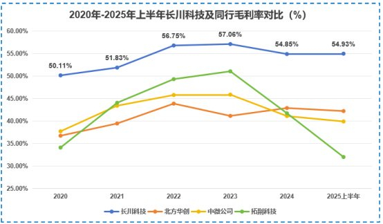 高毛利的秘诀,技术壁垒与性价比的平衡。更令人称道的是,长川科技在追求性价比的同时并没有牺牲利润。2020-2025年上半年,公司毛利率始终维持在50%以上的较高水平,甚至超越了北方华创、中微公司等全国级设备龙头。