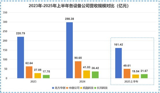 2023-2025年上半年,国内半导体设备巨头北方华创、中微公司、拓荆科技营收同比增速基本保持在30%以上,展现了设备环节在产业链中的独特韧性。