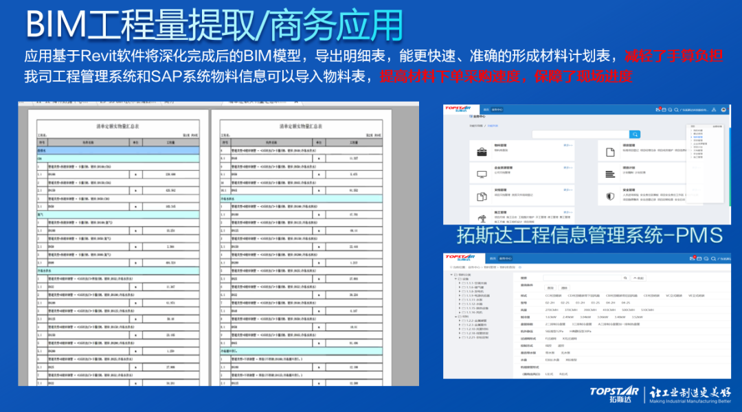 随着新能源汽车行业的蓬勃发展,锂离子动力电池的需求也呈现爆发式增长,对厂房环境提出较高的要求。本项目存在内部机电管线密集、多重标高限制、工期紧、体量大的难点,传统设计手段难以满足要求。拓斯达BIM团队将BIM模型与工程管理相结合,实现基于BIM模型辅助项目进度、安全、物资、质量、资料的管理。