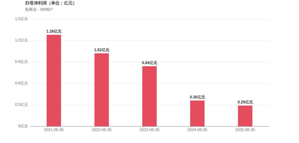 从机构持股情况来看,截至2025年上半年,持有拓斯达股票的机构家数达到5家,相比2024年同期的52家减少了47家,表明机构投资者对公司的信心减弱。