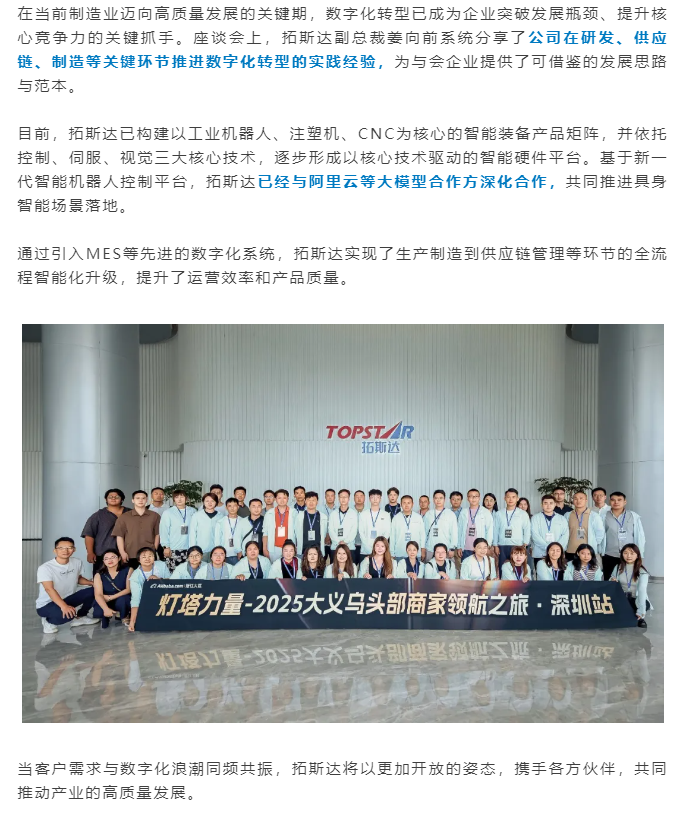 拓斯达携合作伙伴精研客户需求,与阿里共探数字化未来