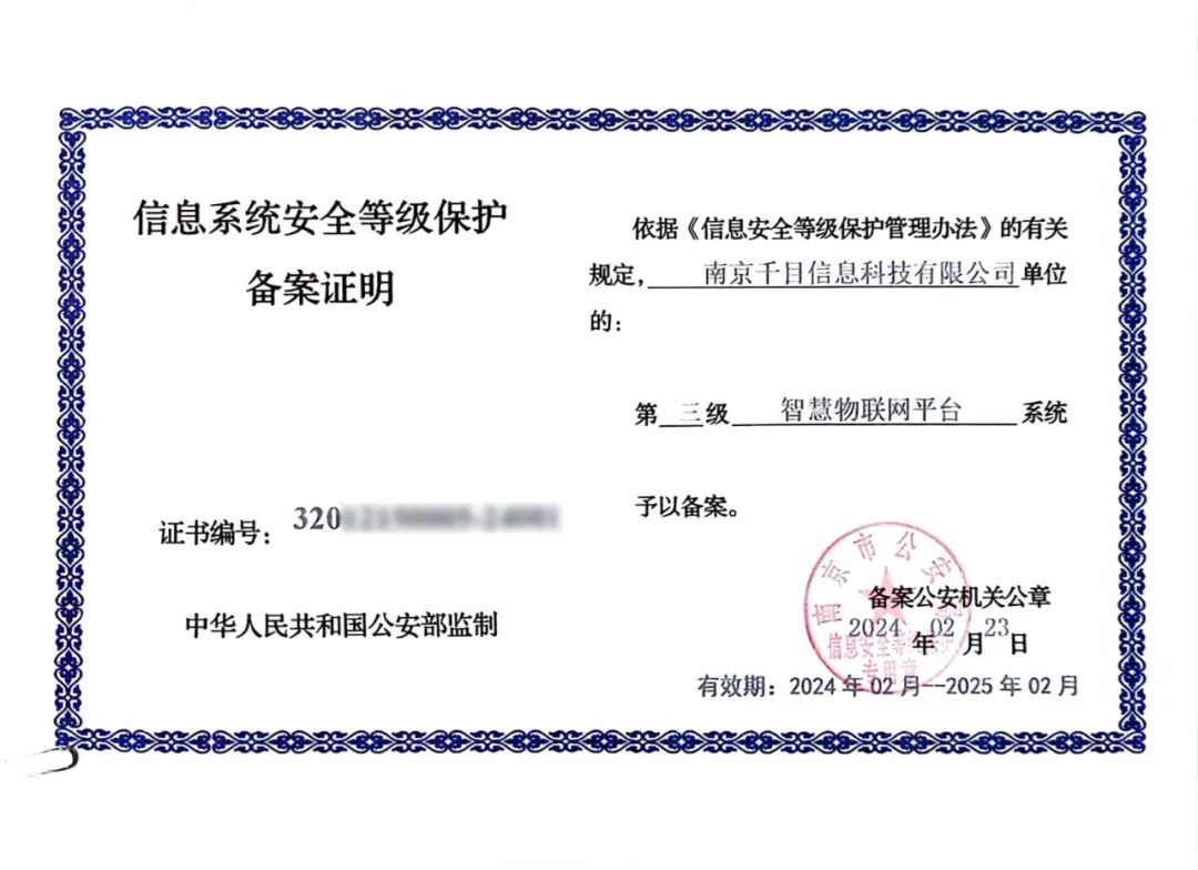 近日,汇纳科技旗下千目信息自主研发的智慧物联网平台顺利通过国家信息系统安全等级测评,正式获得由国家公安部核准颁发的“国家信息系统安全等级保护三级认证”(以下简称“等保三级”认证)。
