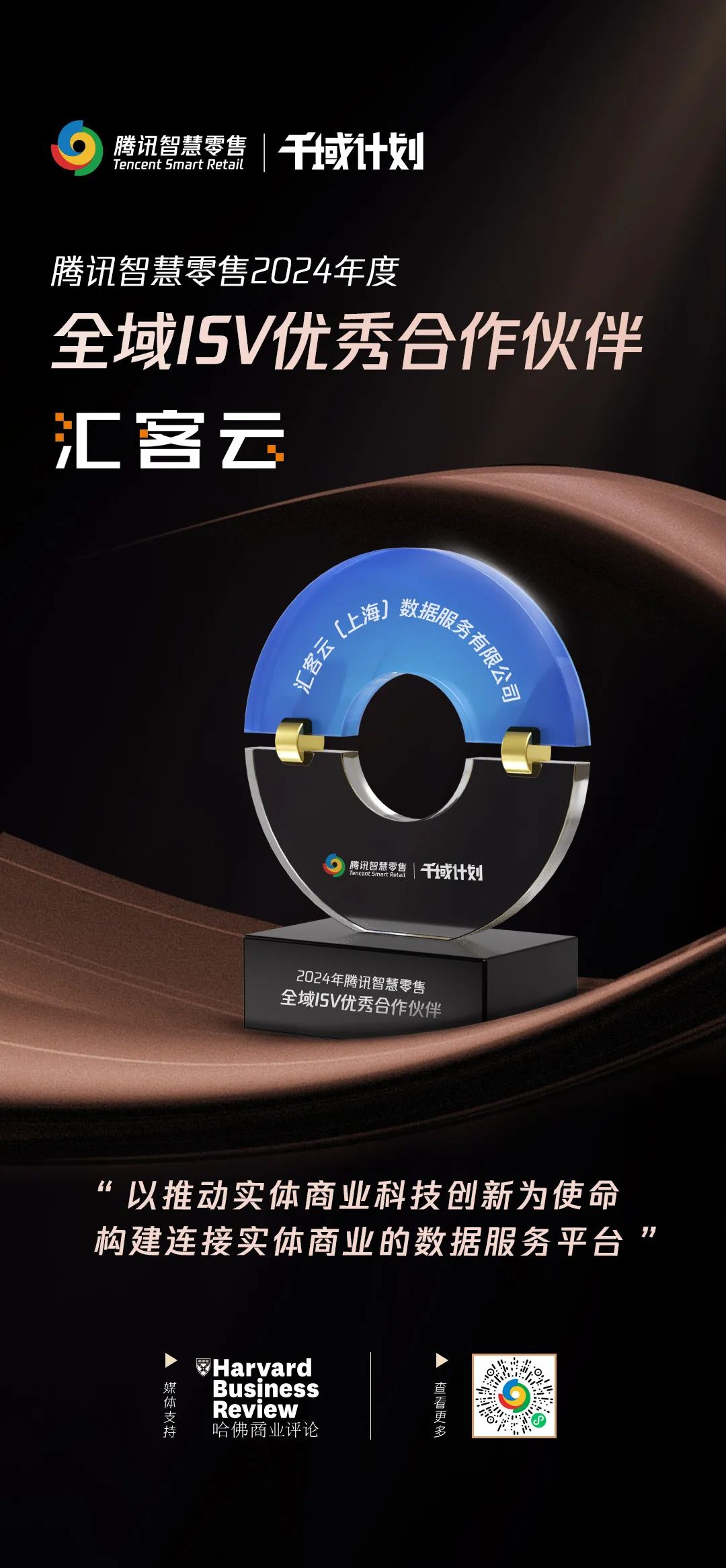 1月7日,腾讯智慧零售 2024 年度生态合作伙伴大会在上海举办。在近200家参与评审的服务商中,汇纳科技旗下汇客云凭借卓越的运营服务、创新的产品开发能力和高品质的解决方案,助力零售品牌提升精细化运营水平,实现业务的快速增长,再度荣获「全域ISV优秀合作伙伴」。