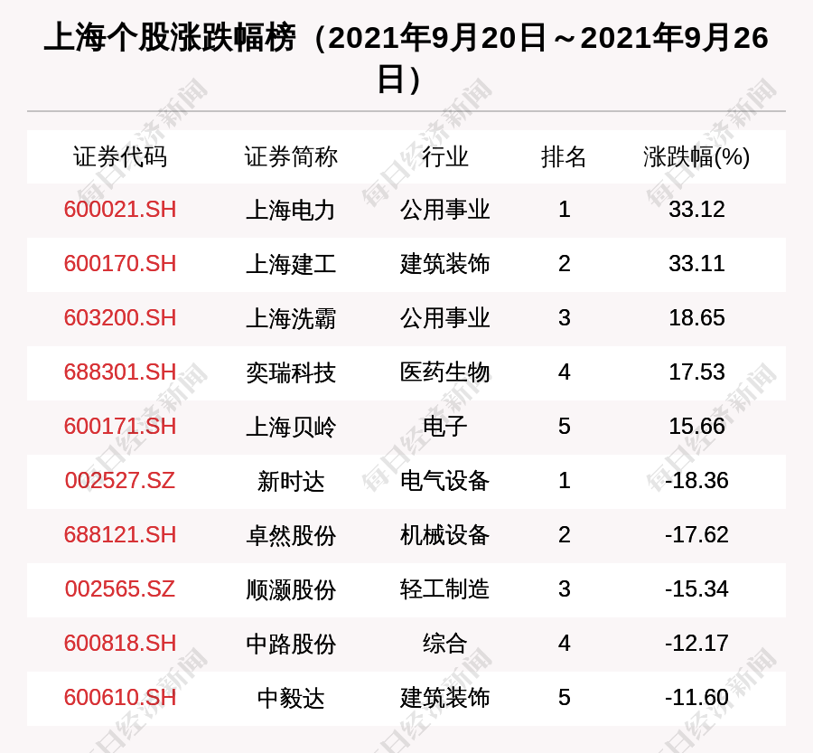 涨跌幅方面,截至2021年9月26日,上海板块市值与前一周相比,区间涨幅为0.48%(加权平均值),涨幅排名全国第7位。
