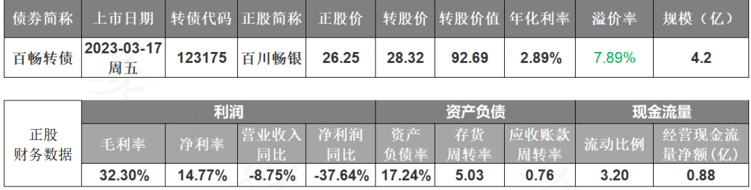 目前债券评级低仅A+,到期年化收益率2.87%,下修条款适中(85%),PB3.07,下修空间大,有回售条款。