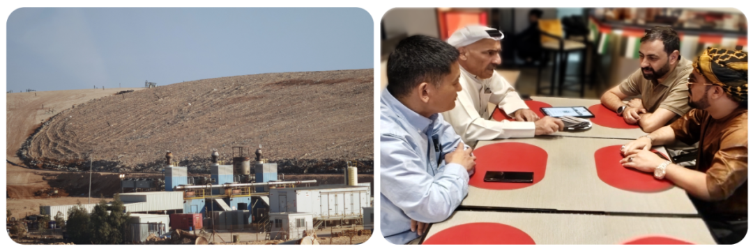 随后,考察团转程阿联酋迪拜酋长国,与当地环境卫生部领导进行会谈,并对迪拜巴亚达填埋场进行现场踏勘,重点探讨了填埋气发电项目的技术可行性与合作模式。迪拜方面对我司成熟的运营体系与智慧化管理模式表现出浓厚兴趣。