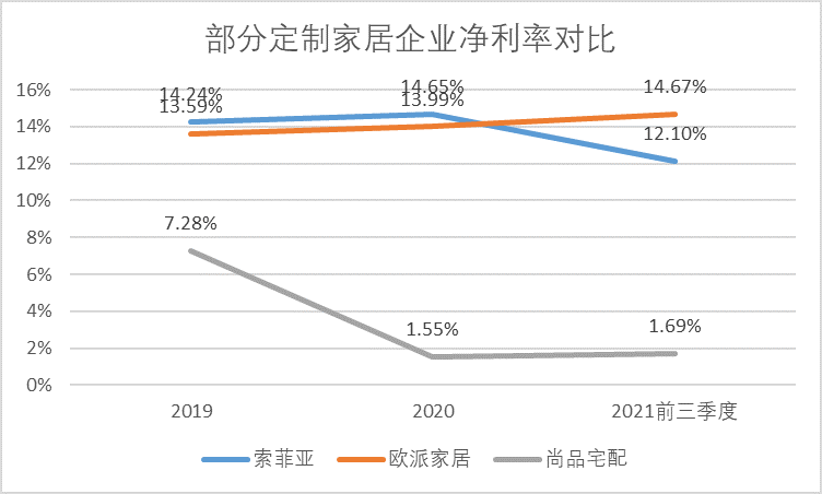 从近几年净利率水平也可以看出,疫情之后尚品宅配盈利能力下降,明显落后于索菲亚与欧派家居。