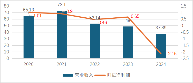 纵观近五年财务表现,尚品宅配的盈利能力不断走弱。数据显示,公司营业收入从2021年的73.10亿元下降至2024年的37.89亿元,三年累计降幅达48.17%;归母净利润亦由2020年的1.01亿元降至2022年的0.46亿元,2024年由盈转亏,跌幅高达432.12%至-2.15亿元。