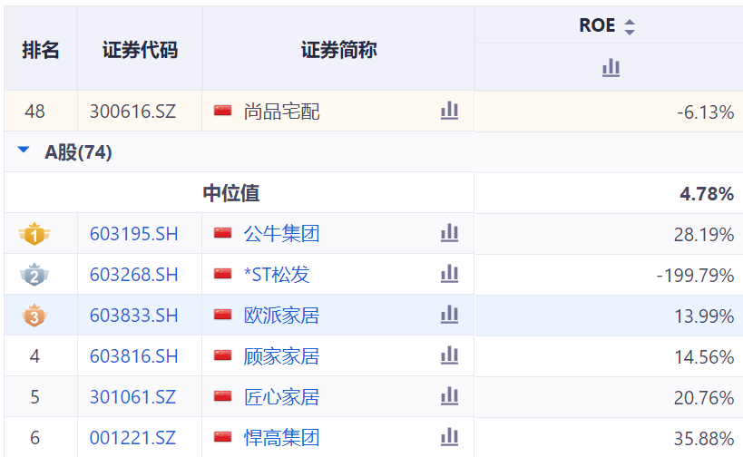 在盈利恶化的背景下,公司ROE(净资产收益率)也由2020年的2.89%一路下行至2024年的-6.13%,累计下降9.02 个百分点,远低于家居用品行业(申万二级分类)4.78%的行业中位值。