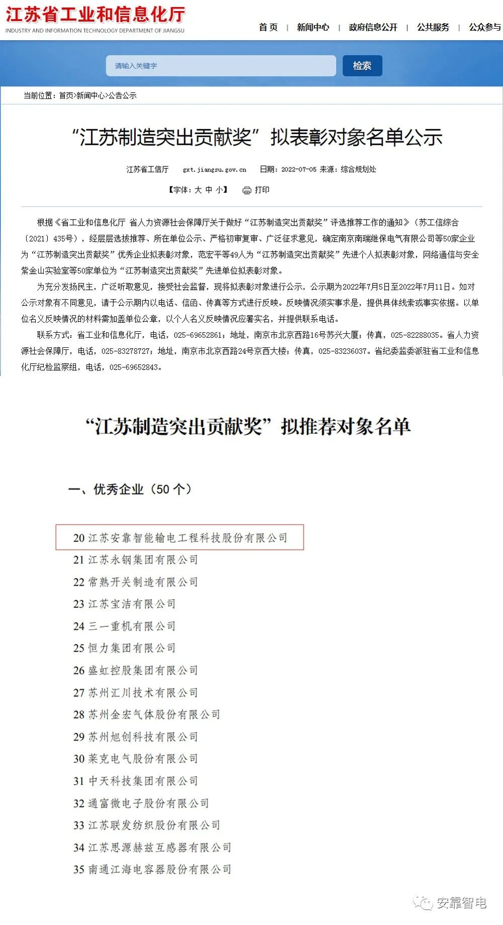 同时,江苏省工信厅、人社厅公布“江苏制造突出贡献奖”名单