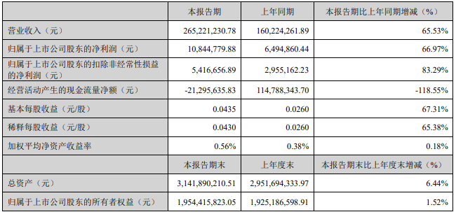 光库科技2025年一季度报告显示,2025年一季度,光库科技营收2.65亿元,归母净利润1084.48万元,扣非净利润541.67万元,经营活动产生的现金流量净额-2129.56万元,货币资金余额10.04亿元。