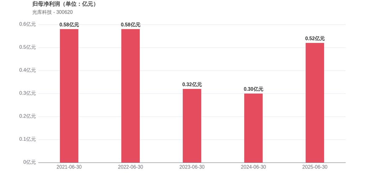 在2025年上半年,光库科技的经营业绩表现亮眼,实现营业收入5.97亿元,同比增长41.58%,归母净利润0.52亿元,同比大幅增长70.96%。