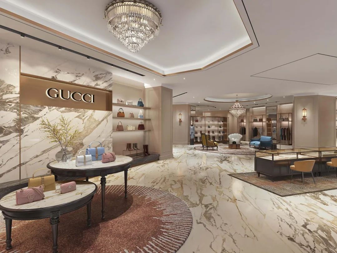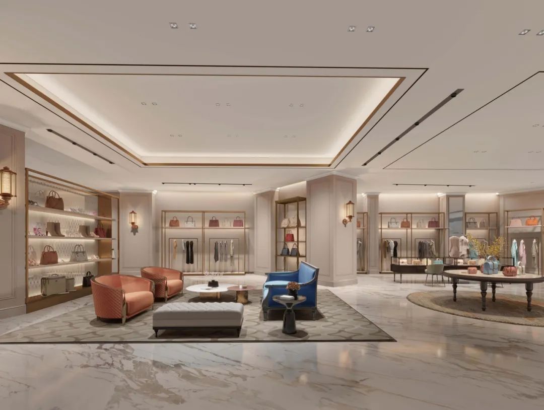 本案将每个不规则的空间变成每个店的特色,同时,以标准化的构件厂家定制,现场安装,快速的实现运营。设计利用原空间的不规则和复杂性,采用欧式的展台和灯具做点缀,体现品牌的奢华感。而每个空间在统一的大氛围中,又有属于其量身定制的风格设计,给消费者带来购物过程的视觉兴奋和购物欲望。