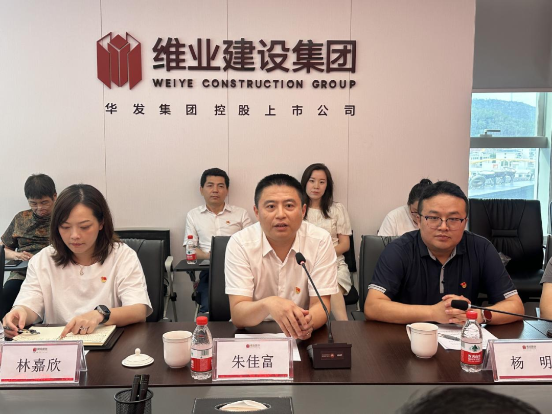 调研结束后,在维业股份会议室举行专题座谈。会上,朱佳富总裁系统汇报了企业战略规划、业务布局、党建创新及业务发展情况,并就行业态势下技术创新、人才梯队建设等核心议题提出建议。