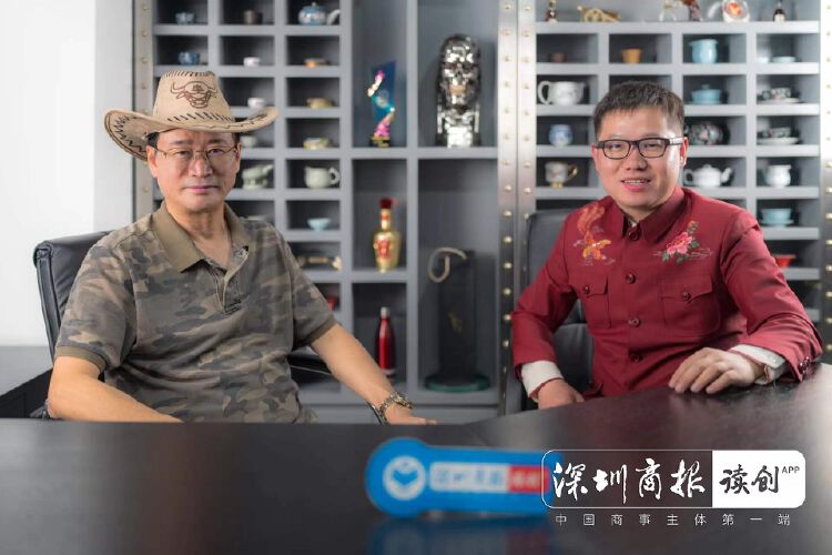 (图:深圳商报《掌门访谈》主持人、记者周良成首次佩戴AR眼镜专访博士眼镜董事长刘晓。梁浚哲/摄)