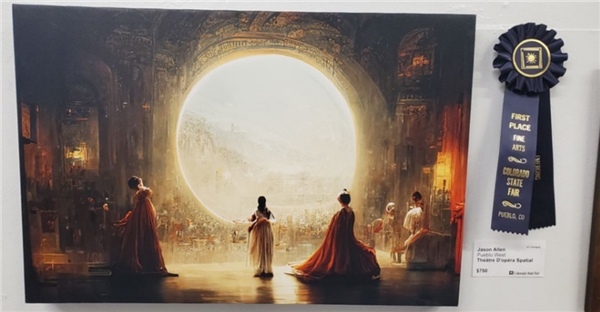 (图:设计师杰森·艾伦使用AIGC创作的《太空歌剧院》是*获奖的AI生成艺术品)