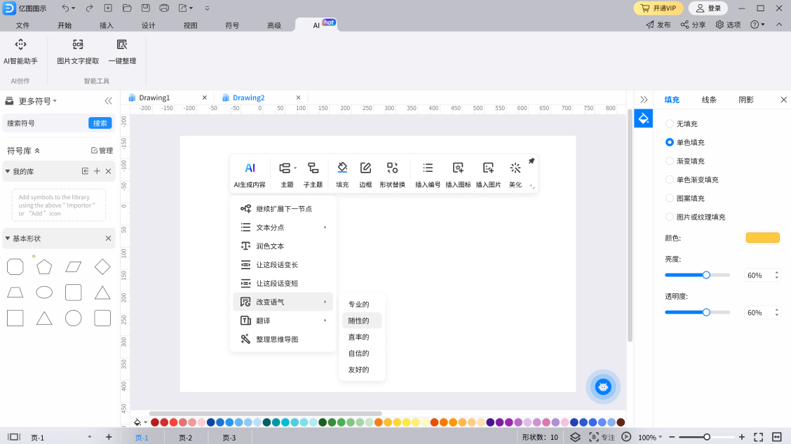(亿图图示增加AI调整文本功能,可一键改写文本、改变语气)