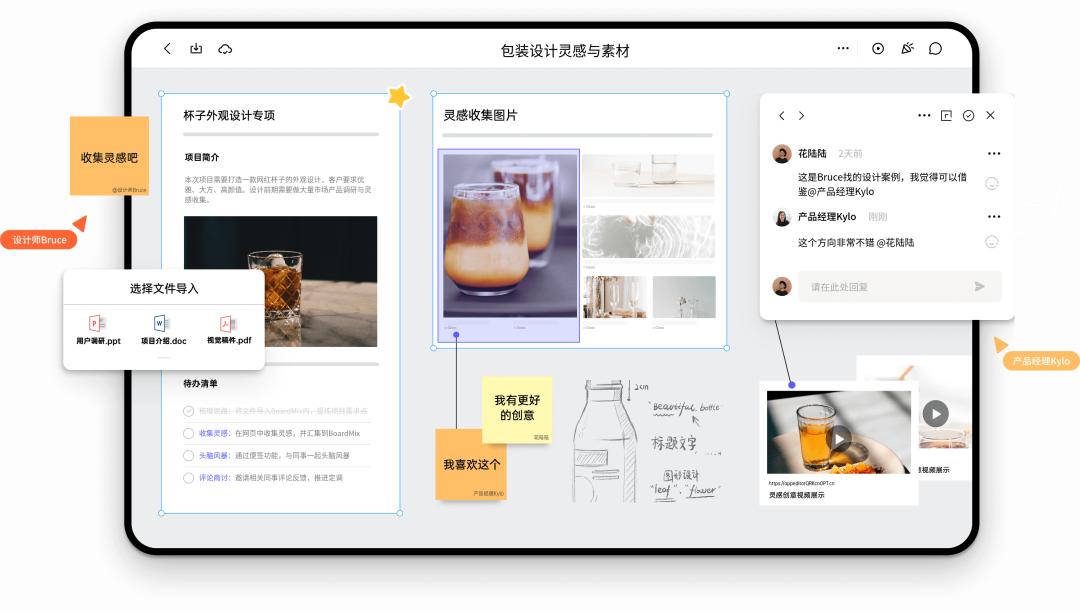 用户可在boardmix上搭建绘图图表、头脑风暴、会议工作坊、项目管理、策略分析、灵感笔记、企业管理、产品设计等工作流。