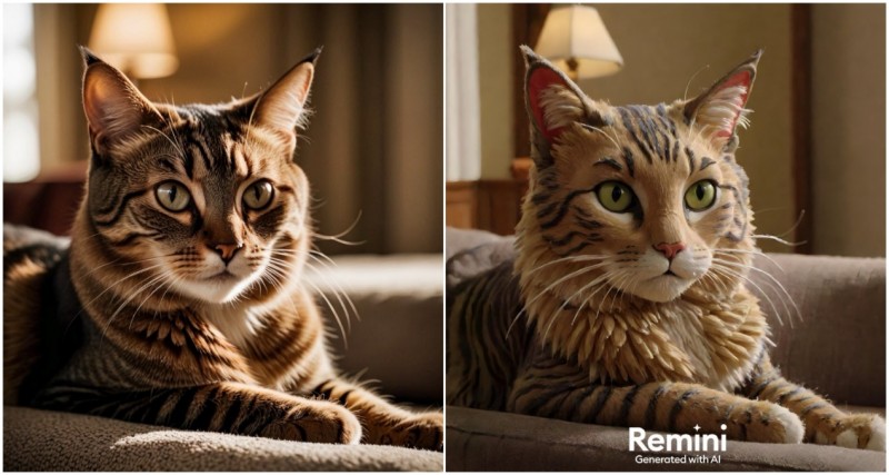 (左侧图片为万兴爱画生成,左侧图片为Remini生成)