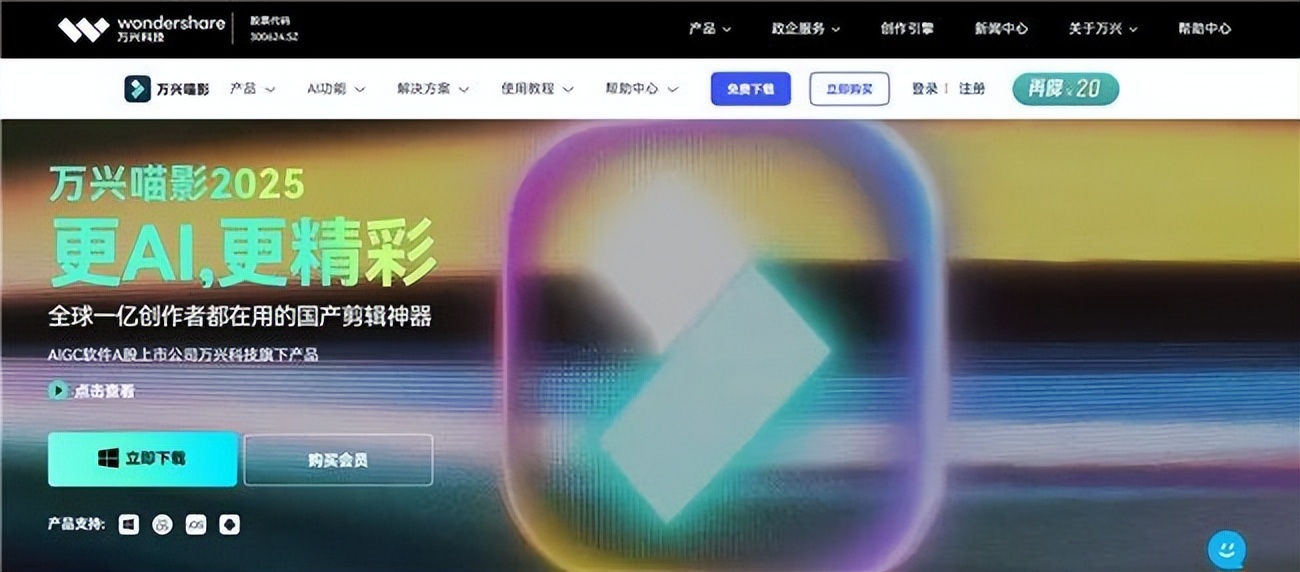 万兴科技是中国数字创意软件领域产品覆盖面广、营收体量大、全球化程度高的A股上市公司,业务覆盖200多个国家和地区,全球累计用户超15亿,月活近1亿。当前,万兴科技面向AIGC时代深度布局,旗下已推出万兴喵影、万兴播爆、万兴录演、万兴优转等视频创意软件,SelfyzAI、Pixpic等图片创意软件,亿图图示、亿图脑图MindMaster等绘图创意软件,以及万兴PDF等文档创意软件,并推出万兴天幕音视频多媒体大模型等夯实AIGC底座。