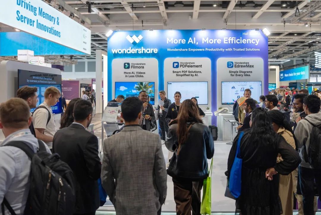 此次参展,万兴科技以“更AI,更高效”主题焕新三大AI解决方案,并亮相展会H2.2-A45展位,通过智能数字化转型助力欧洲产业升级,展现中国科技企业全球化创新实力: