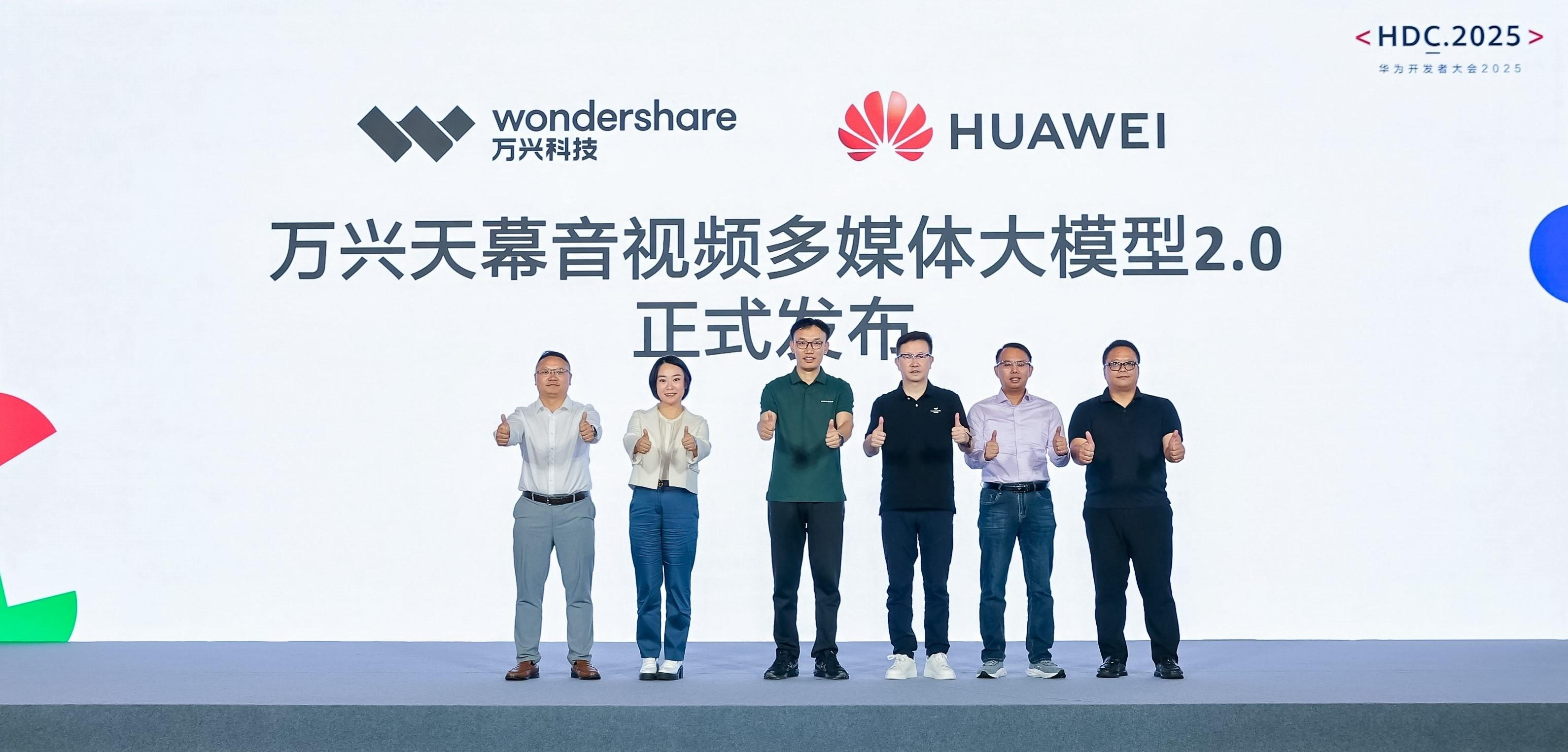 比如,6月20日下午,万兴科技就携万兴天幕音视频多媒体大模型2.0及基于万兴天幕2.0能力底座打造的终端应用新品万兴天幕创作广场亮相华为开发者大会2025。会上,华为常务董事、华为云CEO张平安发表了《解难题,做难事,成就行业AI先锋》主题演讲,并展示了结合盘古多模态大模型能力打造的万兴天幕2.0所生成的两段AIGC视频。