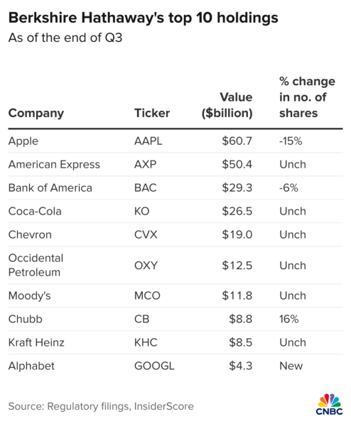 伯克希尔·哈撒韦公司2025年第三季度前十大持股截图