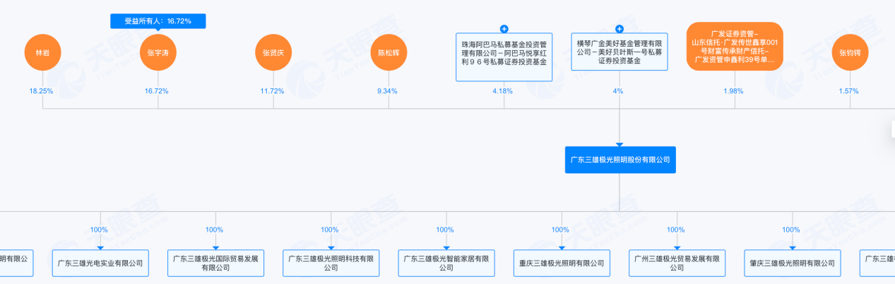 而张宇涛之子张钧锷同样位列股东列表之中,直接持股比例为1.57%。2023年,张钧锷分12次将其持有的三雄极光4%的股份转移到广金美好星宇1号私募证券投资基金中。则目前张宇涛、张钧锷及广金美好星宇的合计持股比例超过22%。