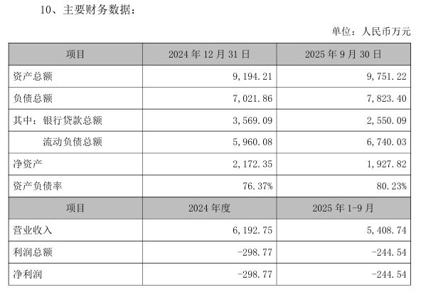 鄂尔多斯市承源商贸有限公司 2024年净利润为亏损10.34万元,今年前三季度亏损23.82万元。截至今年9月30日,资产负债率从2024 年末的90.95%升至94.68%,截至目前仍有70万元担保余额。