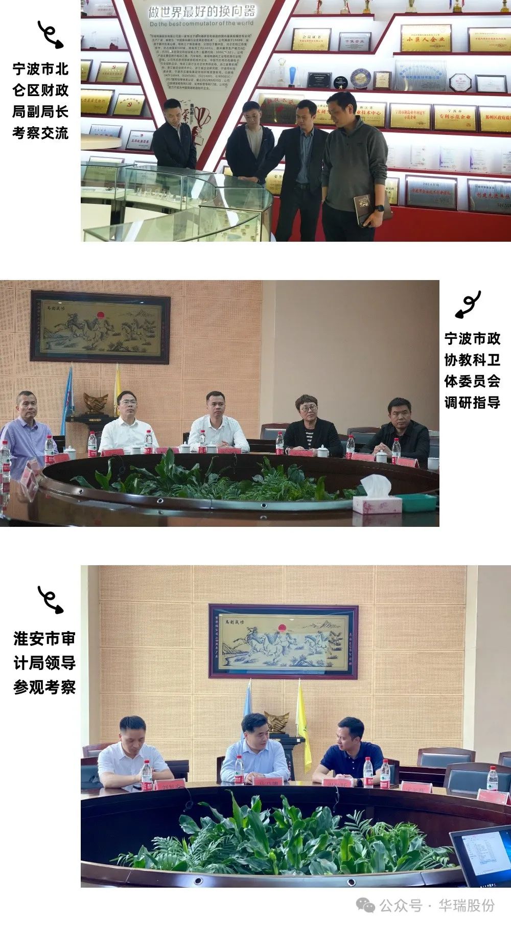 11月,华瑞股份迎来东北证券等9家机构投资者现场调研。总经理谢劲跃、副总经理兼董事会秘书宋光辉接待,宋光辉介绍公司发展历程等,互动环节投资者提问,公司高层解答并听取建议,投资者参观展厅。此次调研使投资者深入了解公司,公司有望保持良好发展,为投资者创造更多价值。