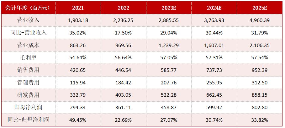 基于以上假设,我们对公司2023年-2025年整体经营业绩预测简表如下: