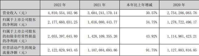 4月21日晚,亿联网络公布2022年年度报告,2022年,公司实现营业收入48.11亿元,同比增长30.57%;归属于上市公司股东的净利润21.78亿元,同比增长34.75%;归属于上市公司股东的扣除非经常性损益的净利润20.55亿元,同比增长43.92%;经营活动产生的现金流量净额21.23亿元,同比增长91.75%。