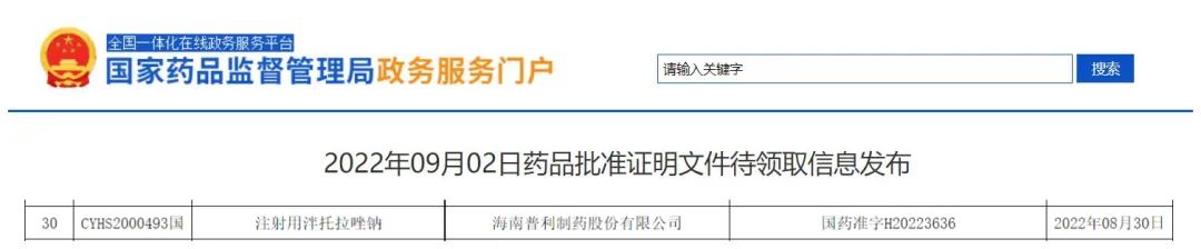 8月30日,普利制药生产的普利泮妥·注射用泮托拉唑钠通过国家药监局审批,视同通过一致性评价批准上市。