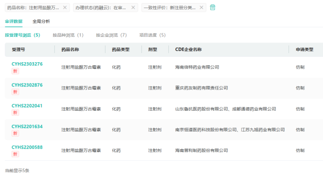 截图来源:药融云中国药品审评数据库