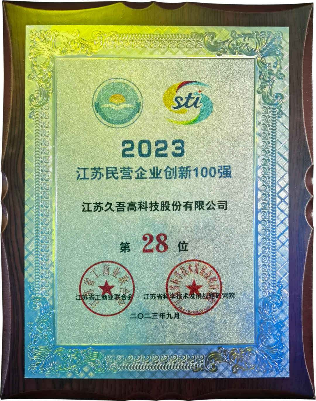 在江苏宿迁召开的2023江苏民营企业百强发布暨中国宿迁绿色产业洽谈会开幕式上,发布了2023江苏民营企业创新100强名单。久吾高科凭借在陶瓷膜、有机膜、吸附剂等新材料研发方面取得的突出成绩,在江苏民营企业创新100强榜单中排名第28位,南京市第5位。