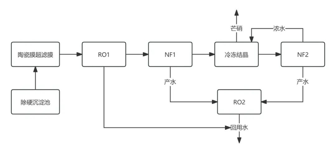 废水首先经过化学除硬预处理,去除钙镁等结垢离子,为后续膜处理保驾护航。随后进入超滤系统,利用久吾高科自主研发的陶瓷膜,高效截留悬浮物和胶体物质。