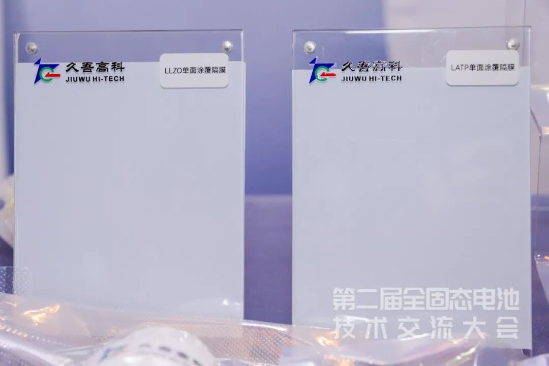 在本次全固态电池技术交流大会上,久吾高科重点展示了氧化物固态电解质的技术优势,充分彰显创新实力,吸引了众多参会嘉宾、科研院所及产业链合作伙伴驻足洽谈与深入交流。公司自主研发“低温固相-气氛烧结”协同工艺,并结合多元素掺杂改性技术,实现对材料晶格结构的精准调控,主要优势是: