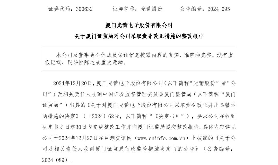 违规不是违法,从公告信息来看,光莆股份可能涉嫌财务造假,只是情节并不是那么严重。并且,光莆电子和一众高管改正错误的态度相当诚恳,只用了三天时间,光莆股份就按监管要求完成了整改。