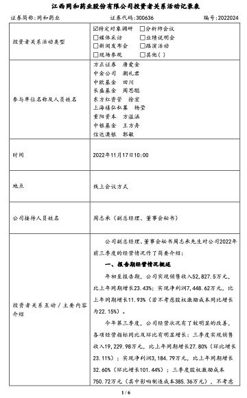 江西同和药业股份有限公司投资者关系活动记录表(以下简称“同和药业”或“公司”)11月20日发布公告称,公司于11月17日接受了多家机构投资者的特定对象调研。同和药业在调研中称,预计到2025年,公司的销售收入可以达到25亿元。