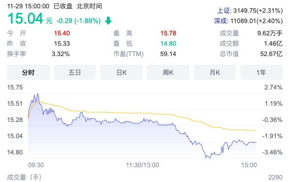▲同和药业29日收报15.04元/股,总市值52.67亿元