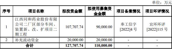 本次向特定对象发行A股股票的募集资金总额不超过11.00亿元,扣除发行费用后的募集资金净额拟用于“江西同和药业股份有限公司二厂区部分车间、装置新、改、扩项目二期工程”、“补充流动资金”。