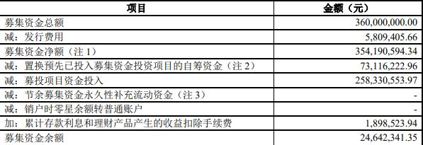 此前,根据中国证券监督管理委员会以证监许可[2020]2259号文批复同意注册,公司向社会公开发行面值不超过3.6亿元的可转换公司债券,期限6年。发行可转换公司债券资金总额为人民币3.60亿元;扣除主承销商招商证券股份有限公司承销及保荐费人民币457.92万元,其他发行费用人民币157.85万元,实际募集资金金额为人民币3.54亿元,其中发行费用可抵扣进项税人民币348294.34元;考虑可抵扣进项税额之后,本次发行实际募集资金净额为人民币3.54亿元。上述资金到位情况业经立信会计师事务所(特殊普通合伙)验证,并由其出具信会师报字[2020]第ZA15815号验资报告。截至2022年6月30日,公司前次募集资金使用金额情况为: