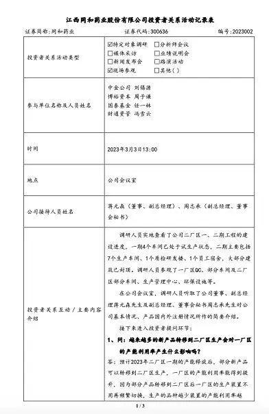 江西同和药业股份有限公司(以下简称“同和药业”或“公司”)3月5日发布公告称,公司于3月3日接受了多家机构投资者的特定对象调研和现场参观。在活动中,同和药业透露,随着全国经济活动恢复正常,公司上游原料价格平稳,稳中有降的趋势;公司新品种毛利率在45%左右,新产品毛利率比较高,随着新产品占比提高,公司整体毛利率将呈上升趋势。