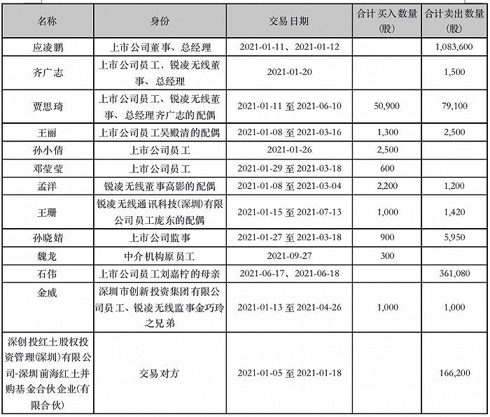 此外,广和通员工刘嘉柠的母亲(石伟)在6月17日、6月18日分别卖出23.11万股和13万股;广和通员工、锐凌无线董事、总经理齐广志的配偶(贾思琦)在1月11日至6月10日期间合计买入和卖出5.09万股和7.91万股。