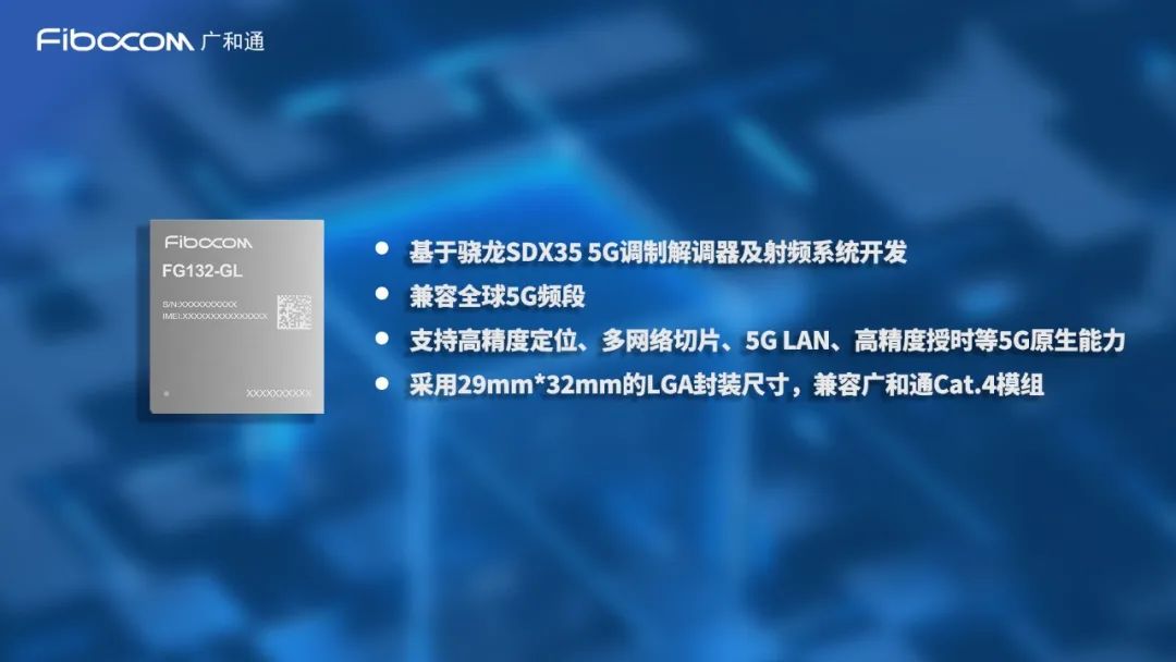 作为全球首批推出RedCap模组的厂商,广和通率先启动RedCap相关研发、测试与认证。FG132-GL率先取得行业内FCC认证,为终端客户提供可商用、高性能的产品与技术服务,轻松解决当前5G终端迭代痛点,助力5G在带宽要求较低、成本和功耗较敏感的中高速物联网大规模部署。