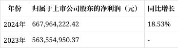 净利润:归属于上市公司股东的净利润为667,964,222.42元,相比2023年的563,554,950.37元增长18.53%。净利润的增长得益于营业收入的增加以及公司有效的成本控制和经营管理。公司在保持传统业务稳定增长的同时,积极拓展新业务领域,优化产品结构,提升了盈利能力。