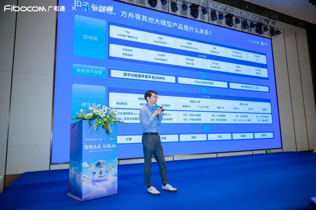 火山引擎扣子产品专家刘天勇现场分享了“扣子一站式AI硬件方案”,并演示了扣子在AI应用开发、调试、评测、观测、发布和生态上的一站式智能体开发能力。他强调扣子与广和通强强联合的AI解决方案实现了用户和设备间快速低时延的AI对话和设备快速控制,高效完成定制化语音交互场景的搭建。
